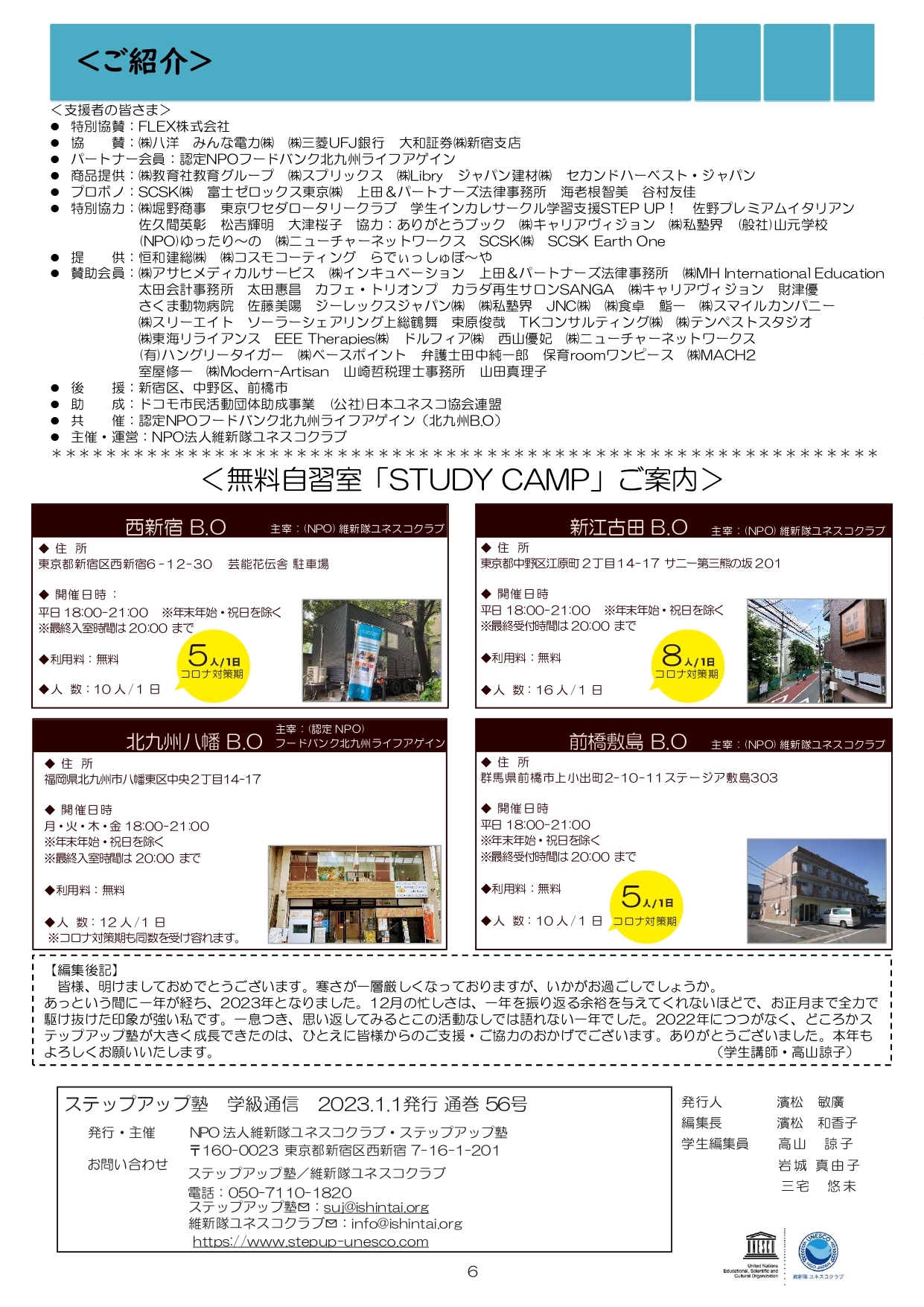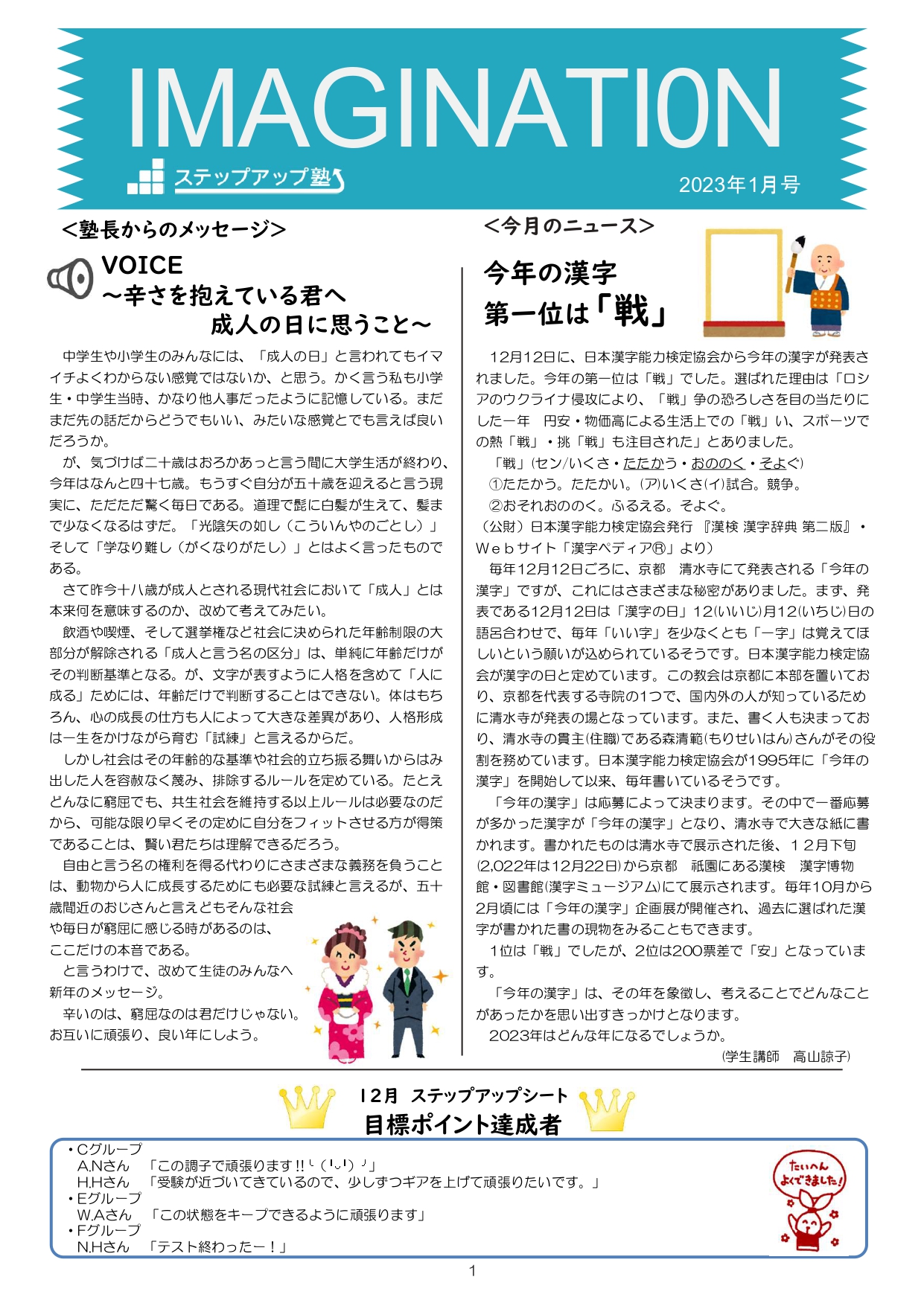 今月も食事つき個別指導型無料塾「ステップアップ塾」の学級新聞をお送りします。