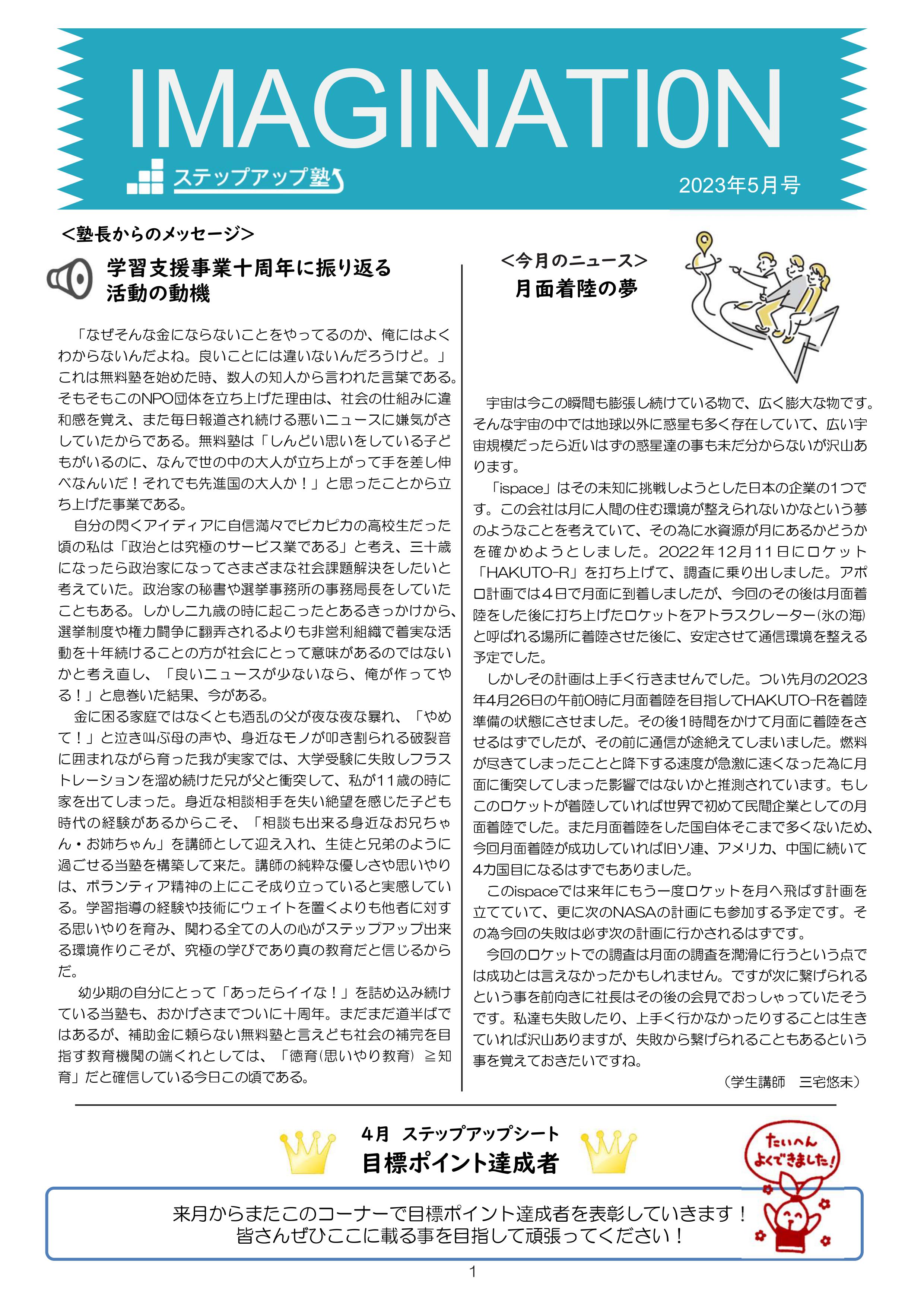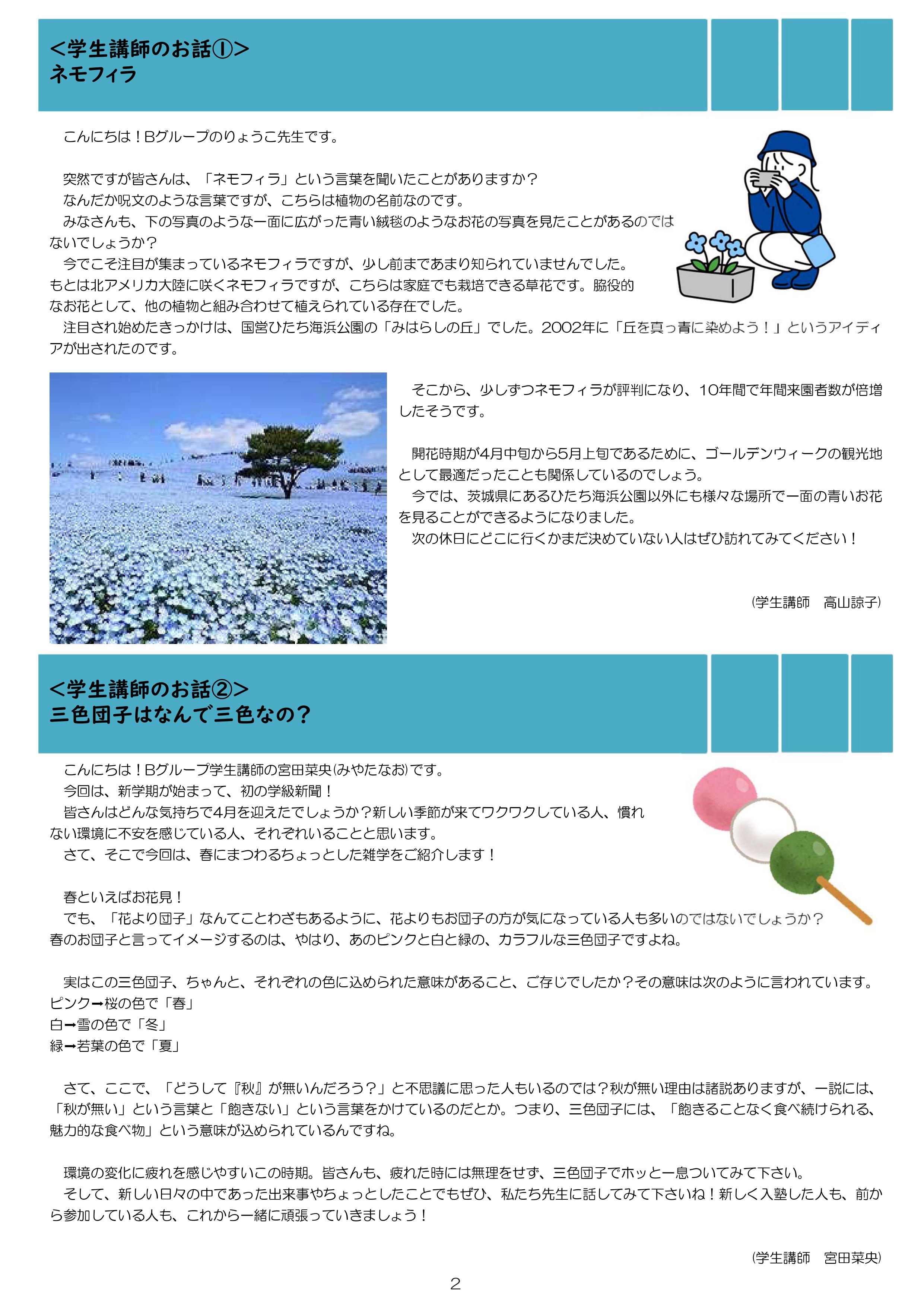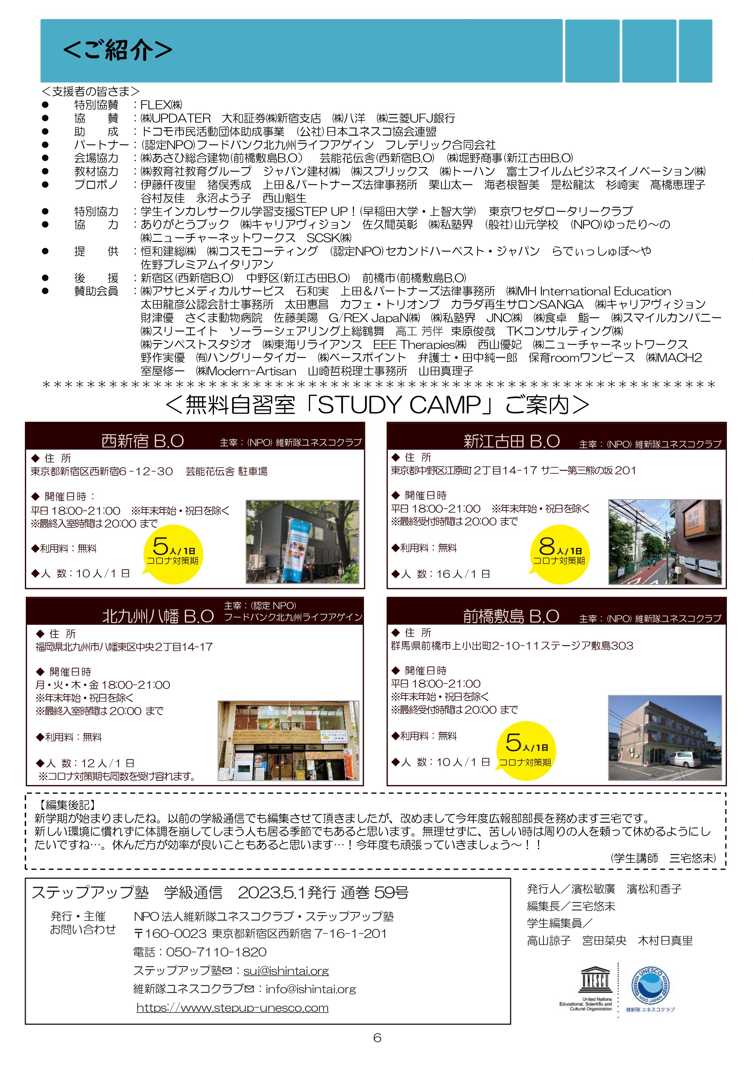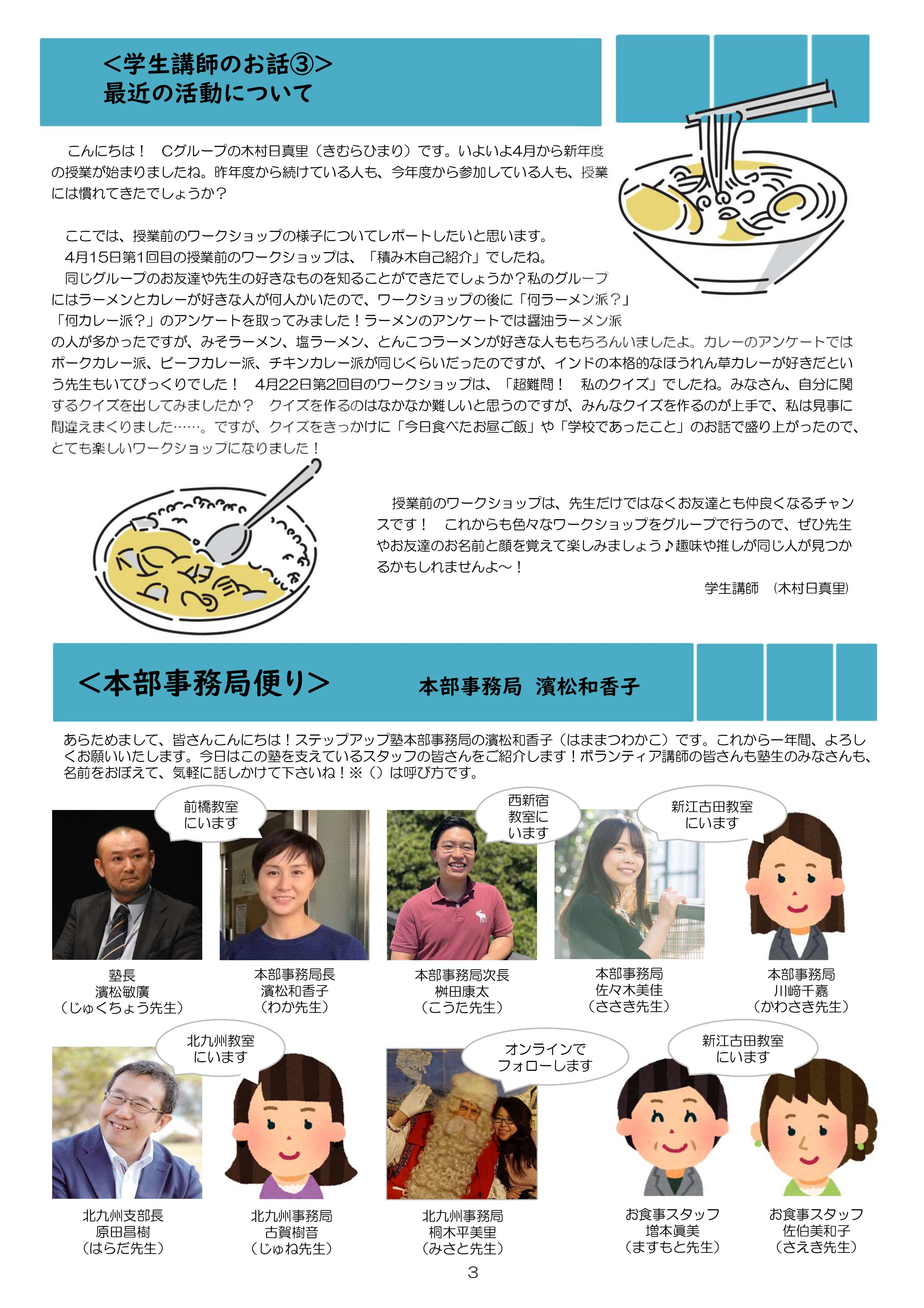 食事つき個別指導型無料塾「ステップアップ塾」では、学生ボランティア講師が学級新聞を作成・発行しています。「ステップアップ塾」10周年についてや、春に関連したトピックなど、今号ならではの内容が盛りだくさんです。ぜひご覧ください!