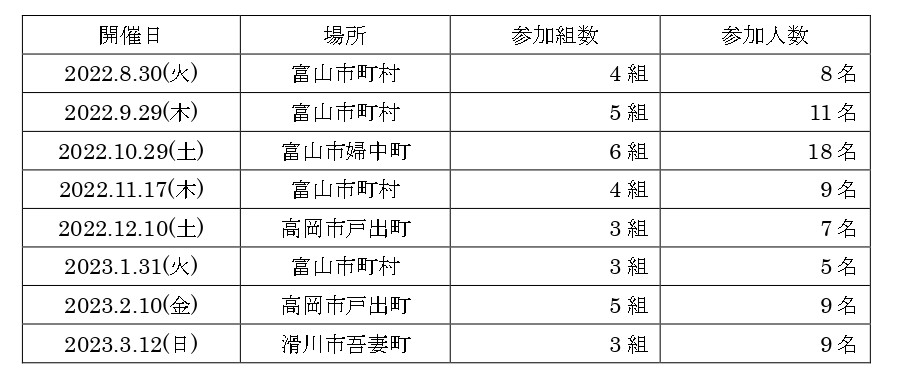 ② 実施場所 県内(富山市・高岡市・滑川市)