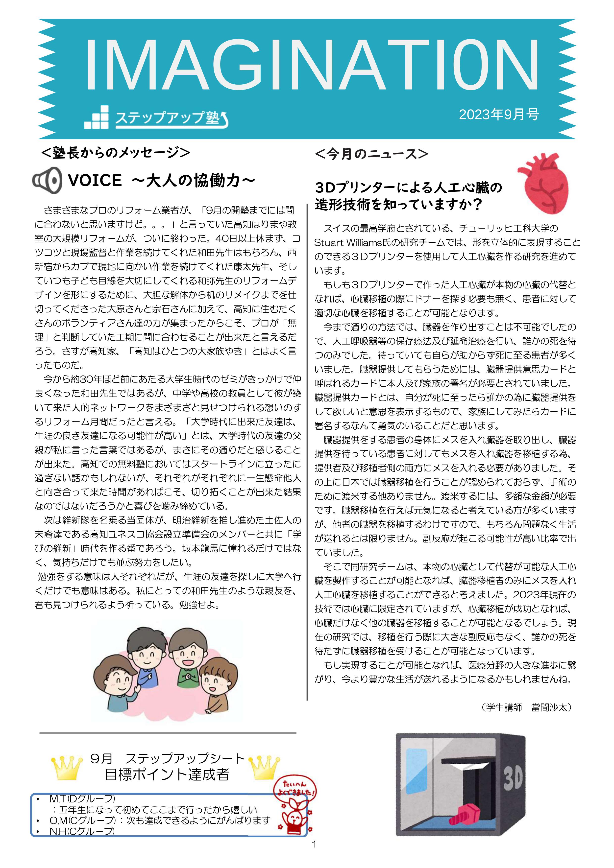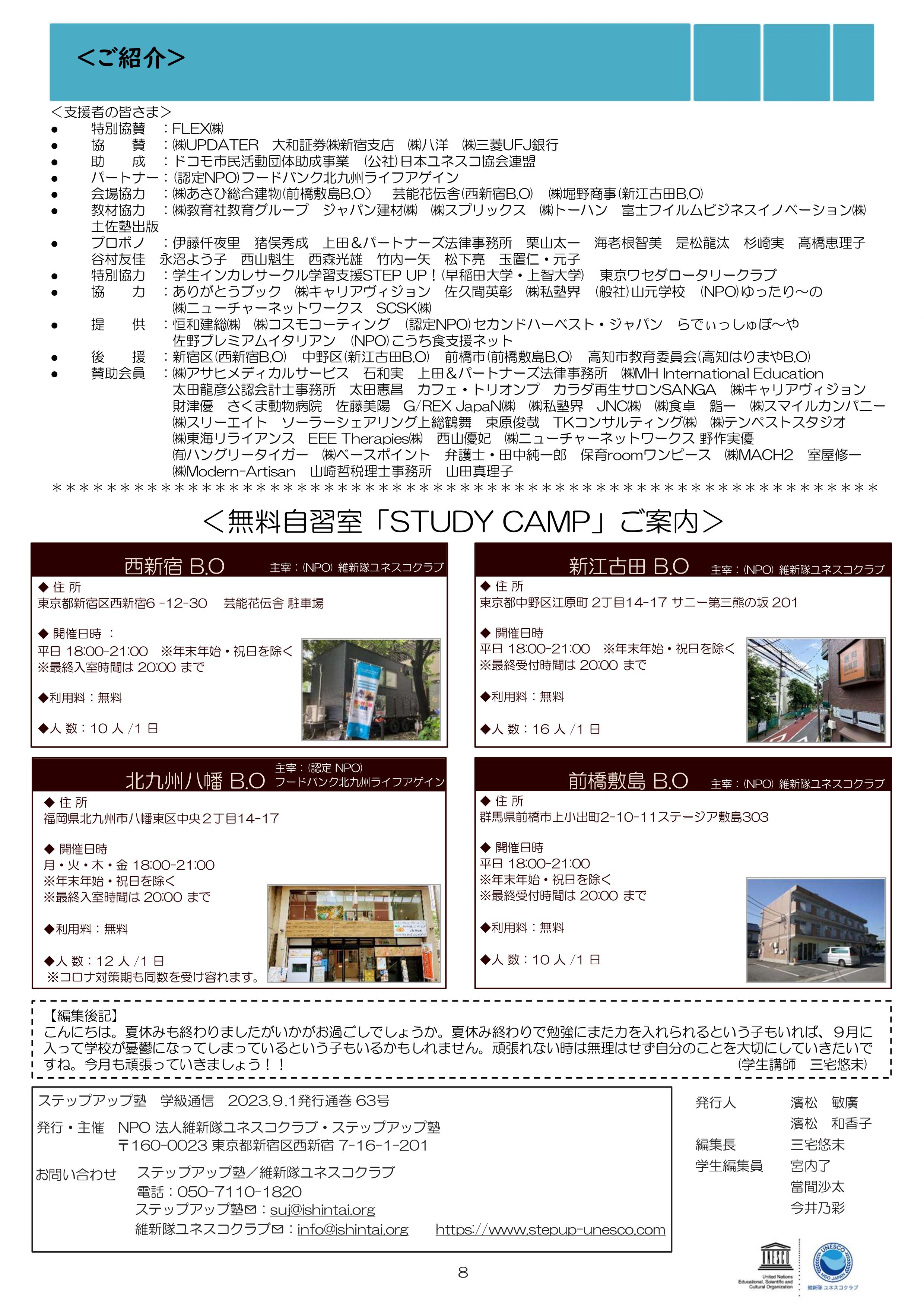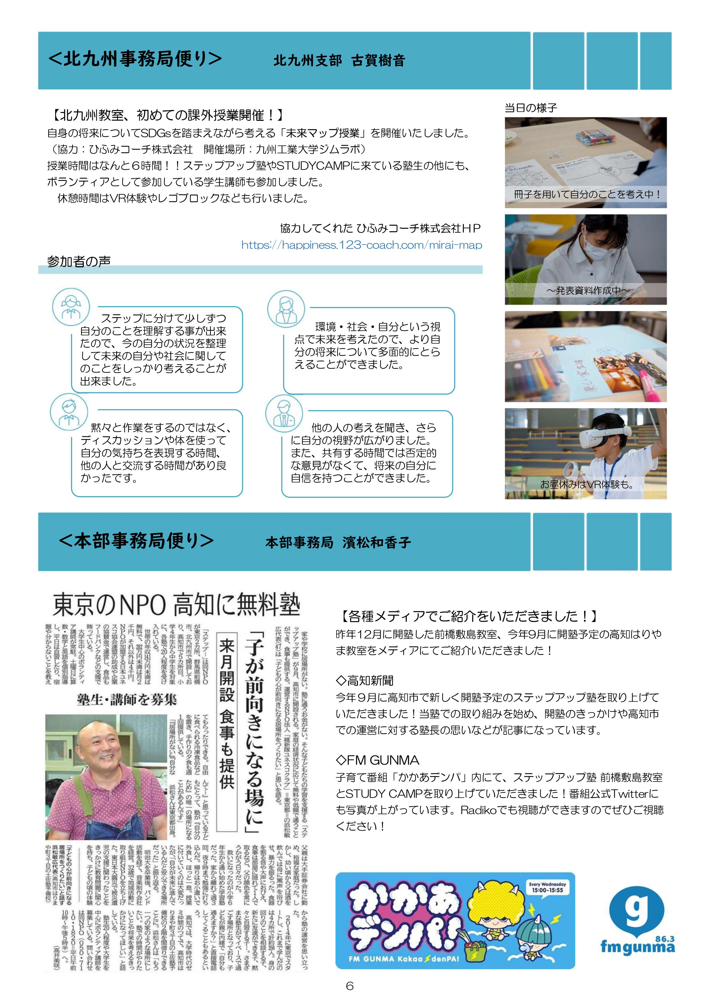 今月も食事つき個別指導型無料塾「ステップアップ塾」の学級新聞をお送りします。毎月学生ボランティア講師が作成しています。毎月塾生と講師が一緒に楽しく読む時間を設けていますので、皆さんも先生になった気持ちで読んで下さいね!