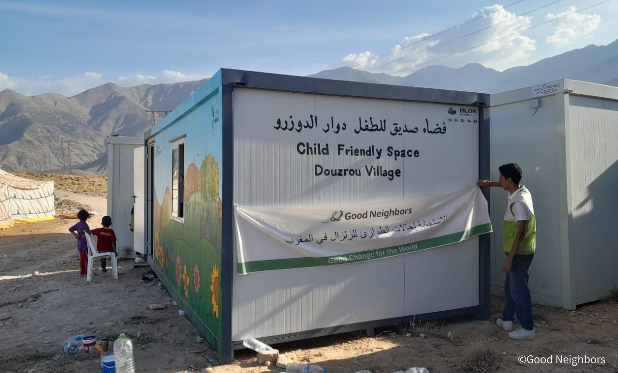 ドウズルー村に設置したチャイルドフレンドリースペース引き続き、子どもたちを始め被災したモロッコの人々の生活を守るため活動を行ってまいります。引き続き温かいご支援をお願いいたします。