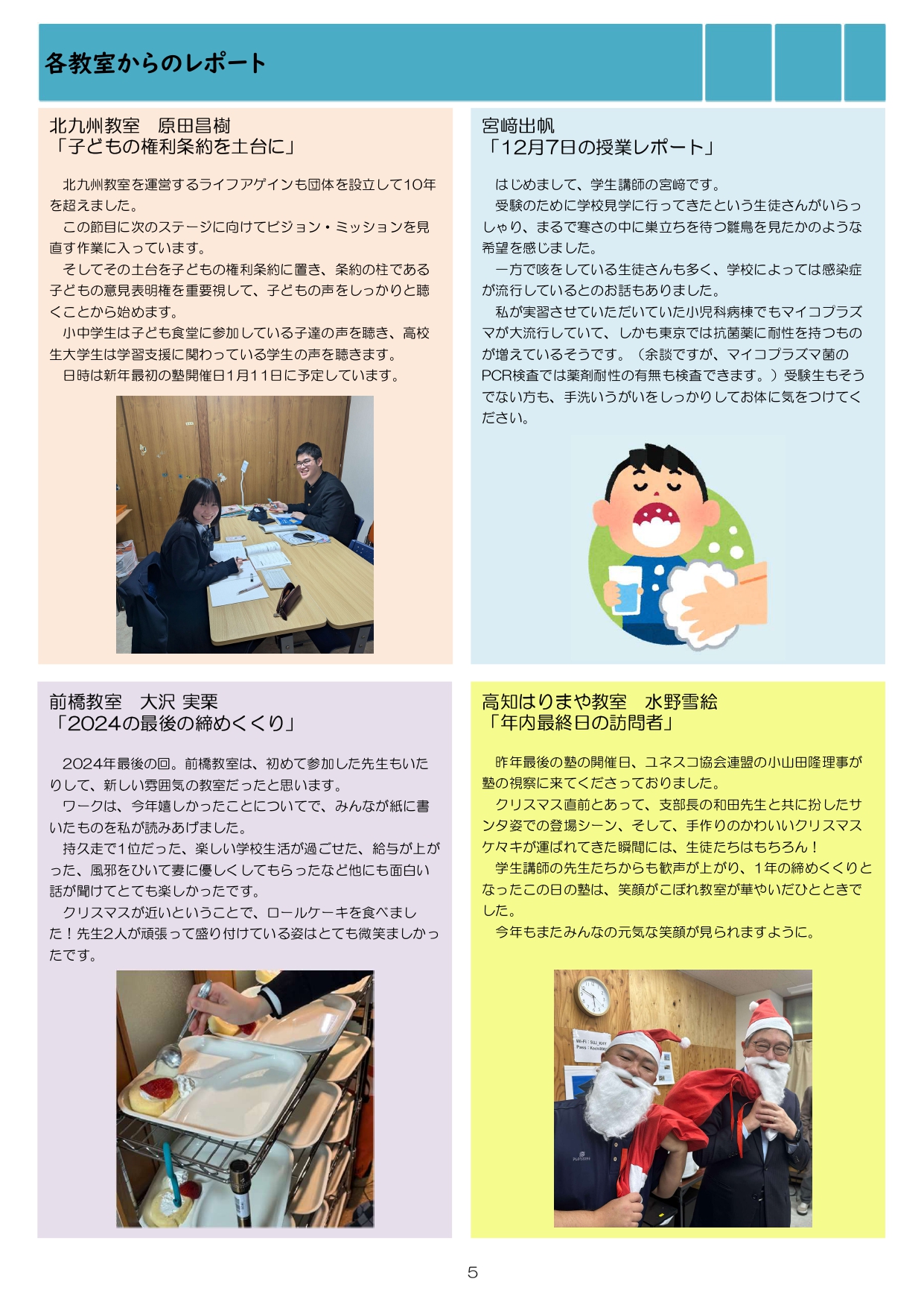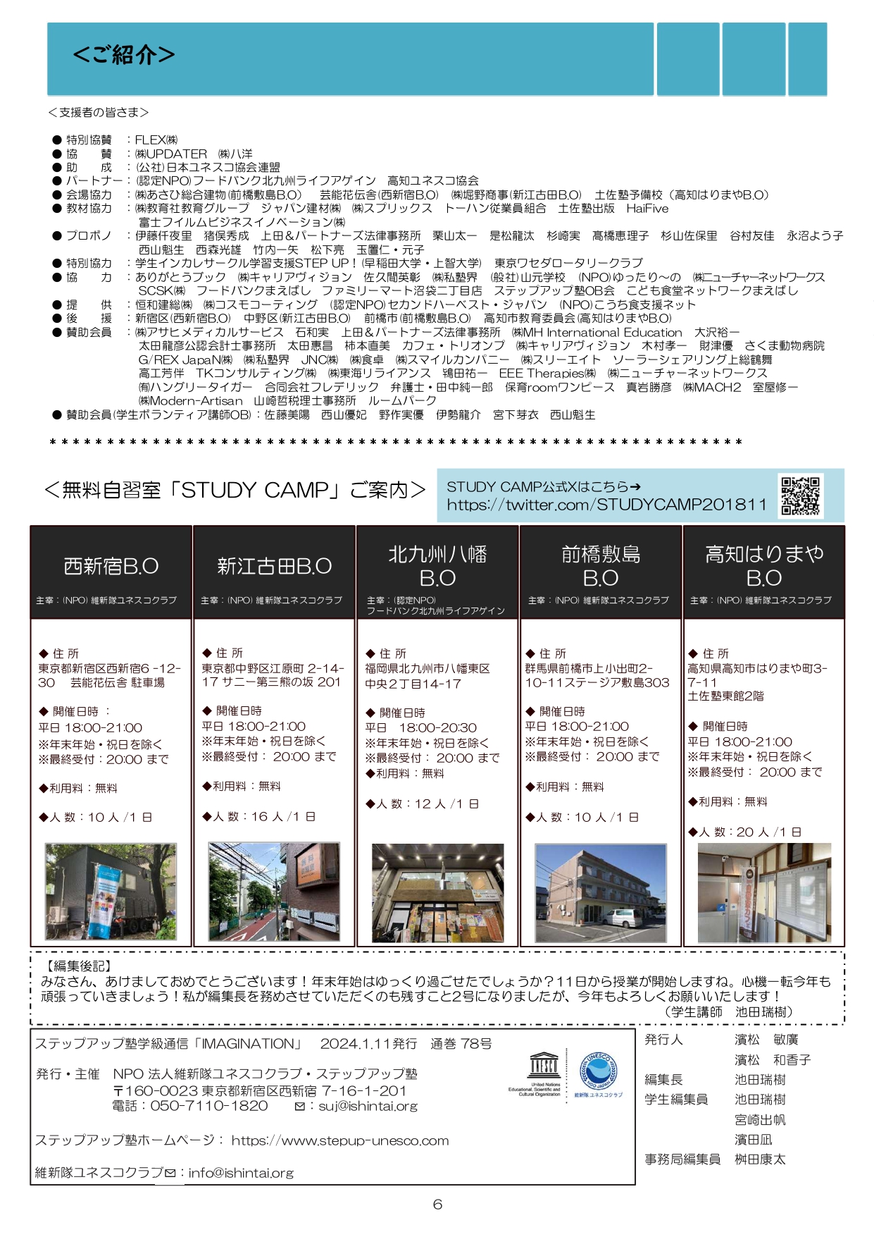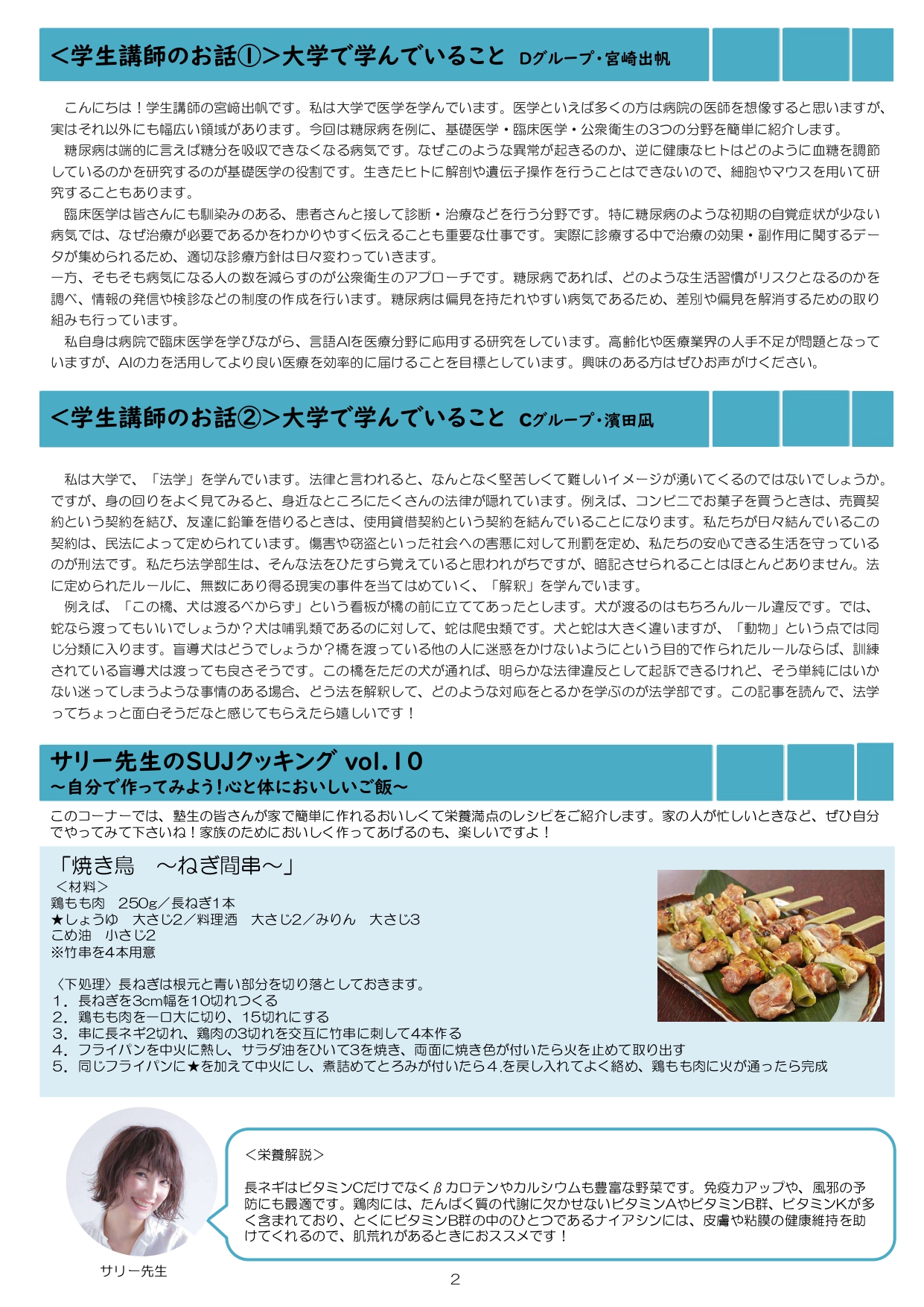 今月も食事つき個別指導型無料塾「ステップアップ塾」の学級新聞をお送りします。毎月学生ボランティア講師が作成しています。毎月塾生と講師が一緒に楽しく読む時間を設けていますので、皆さんも先生になった気持ちで読んで下さいね!
