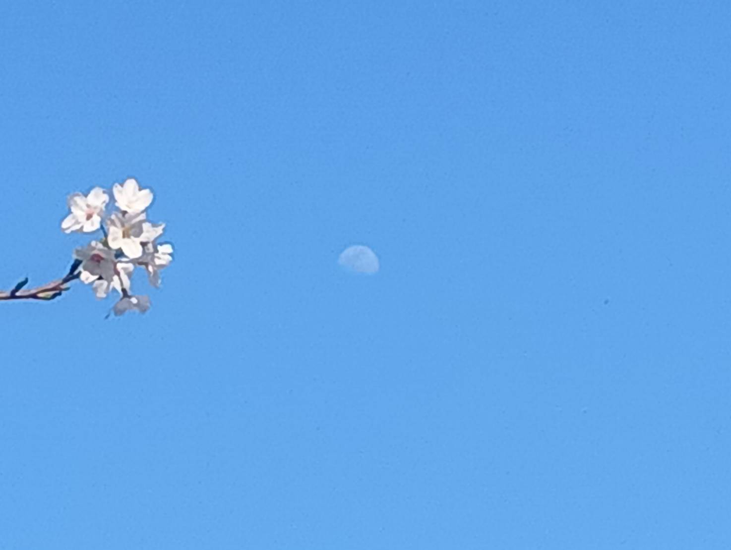 団地の広場はお花見日和で、小学生が昼の月と桜を見事にとらえた写真を撮ってくれました(^^)
