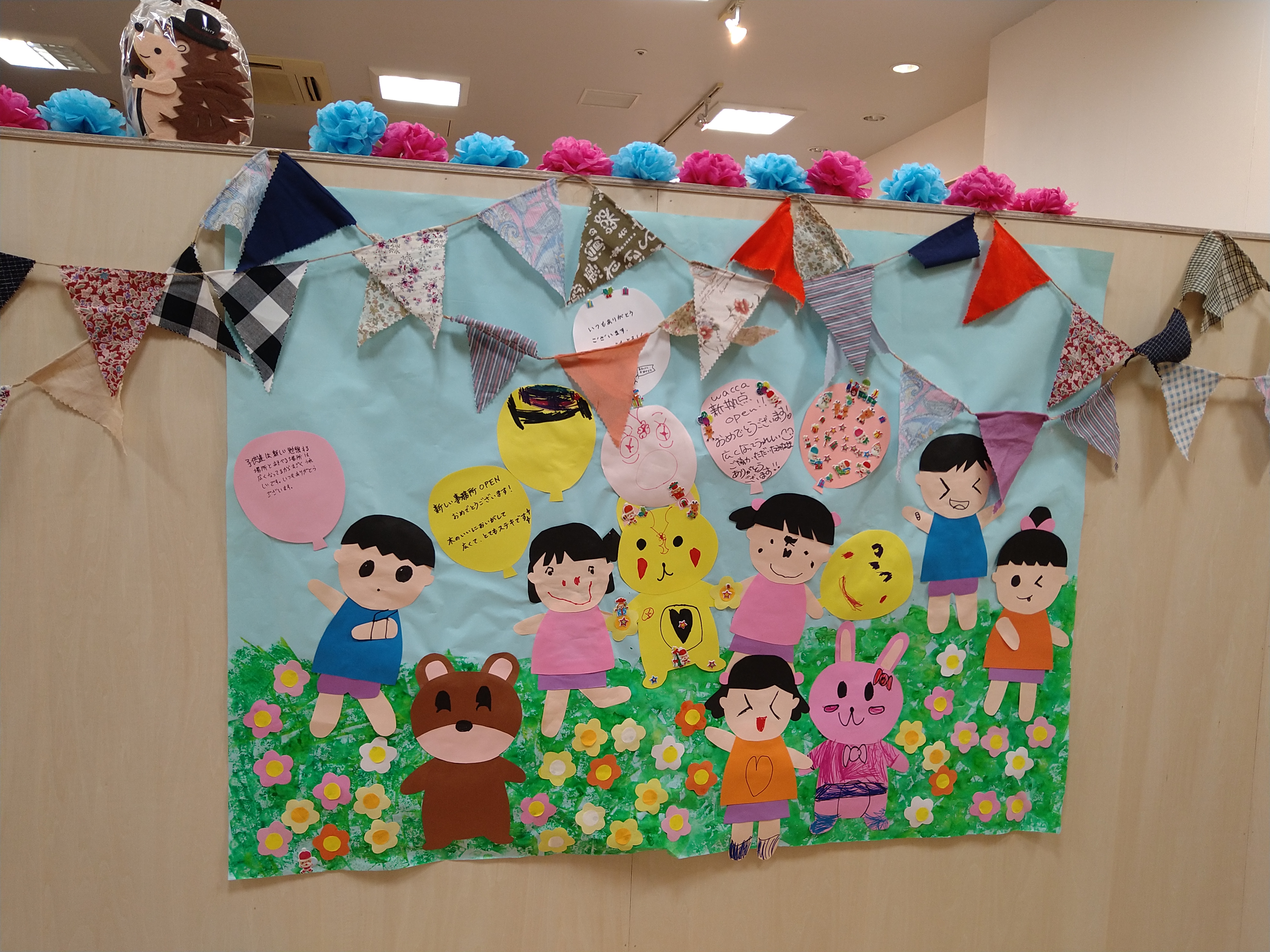 子どもたちが作ってくれた作品は玄関に貼りました!