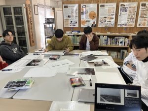 学生たちは、写真の細部に目を向け、物語を想像しながら、自分たちなりの解釈をもとに写真にタイトルを付けていました。こうした取り組みを通じて、それぞれの視点の違いにも気づきながら、西淀川公害に対する興味を深めました。