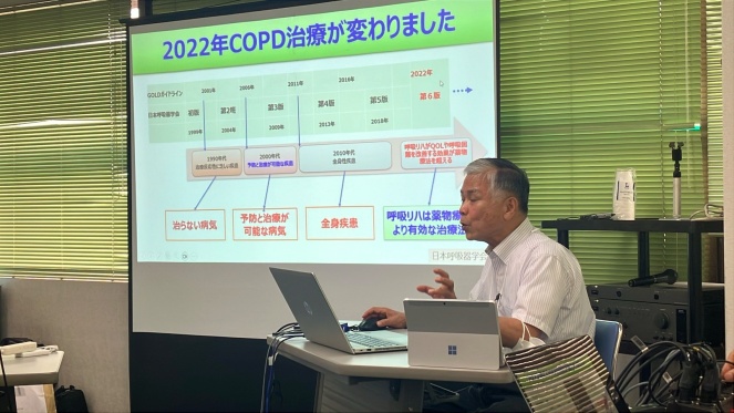 過去には治らない病気と言われていたCOPDですが、2022年に呼吸器学会が発行したガイドラインには呼吸リハビリは薬物療法より有効な治療法であると書かれています。呼吸リハビリは息切を軽減する効果があり患者さんのQOL(健康の質)を改善することができます。呼吸リハビリにしっかり取り組むことで、呼吸器疾患があっても生き生きとした生活を送ることができるようになります。