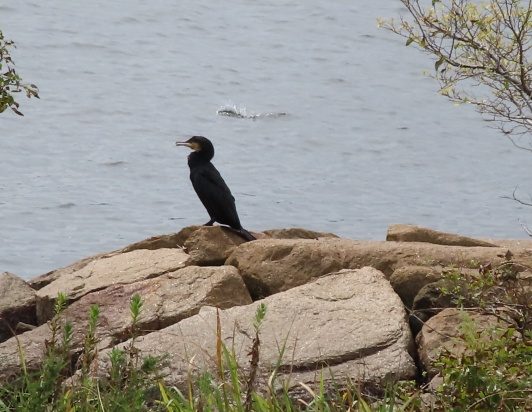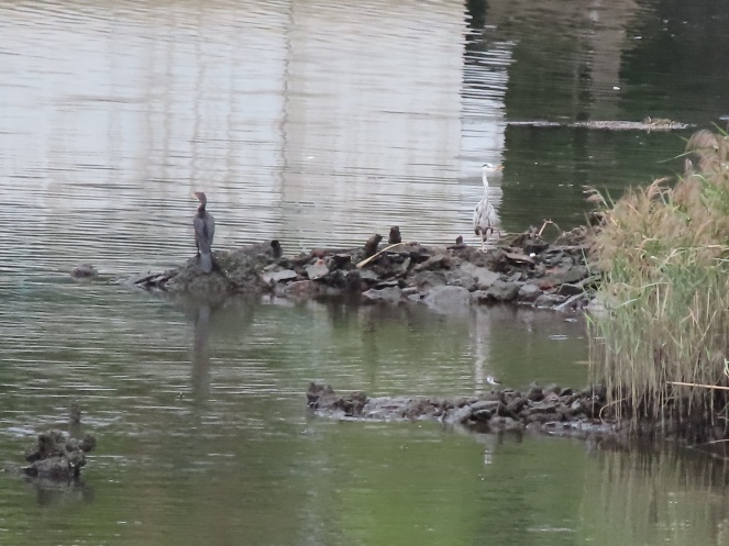 淀川ではカワウがいました。カワウは高度経済成長期には絶滅の危機にさらされましたが、現在では数が回復。カワウの目は美しいエメラルドグリーンの色をしています。よく似た鳥であるウミウは、大阪では岬町のみで観察できるそうです。