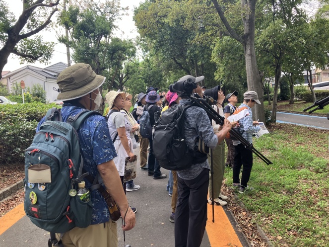 阪神なんば線「福」駅を出発し、大野川緑陰道路を通って矢倉海岸まで約3.5km。日本野鳥の会大阪支部のリーダーの楽しい解説とともに、渡り鳥から身近な鳥まで、さまざまな野鳥を観察できました。