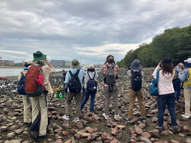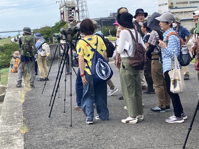 長くて厳しい夏を乗り越え、ようやく暑さがやわらいだ9月20日(土)、矢倉海岸・緑陰道路探鳥会が開催されました。参加者は35人(うちリーダー8人)。
