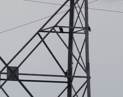 3月にはカラスに巣を襲撃されていたミサゴですが、無事に繁殖できたようです。この日は3羽観察できました。都市部のミサゴが繁殖できる例は珍しいそうです。