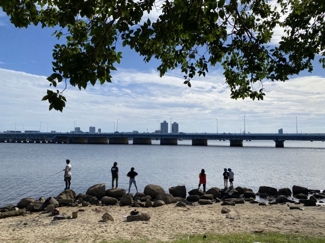 ハゼ釣りの後は、西淀川区のSDGs・環境美化の取り組みの一環として、環境局による水質調査、淀川河川レンジャーによる「淀川のヨシのおはなし」、河川敷のゴミ拾いなどを通じて、淀川の環境と自然生態系を学びました。