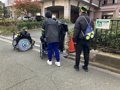 ・車いすを押すことは、めったにないので初めてのことで、坂道で下るときは後ろを向いて進むことを知らなかったので驚きました。