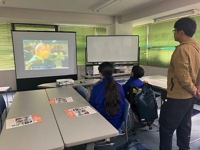 公害問題についての映像を視聴中