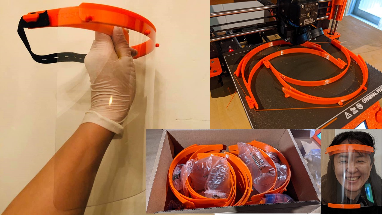 私たちは有志が集まり、入手困難な状況が続いていたフェイスシールドを3Dプリンターで制作して寄贈する活動を行っています。