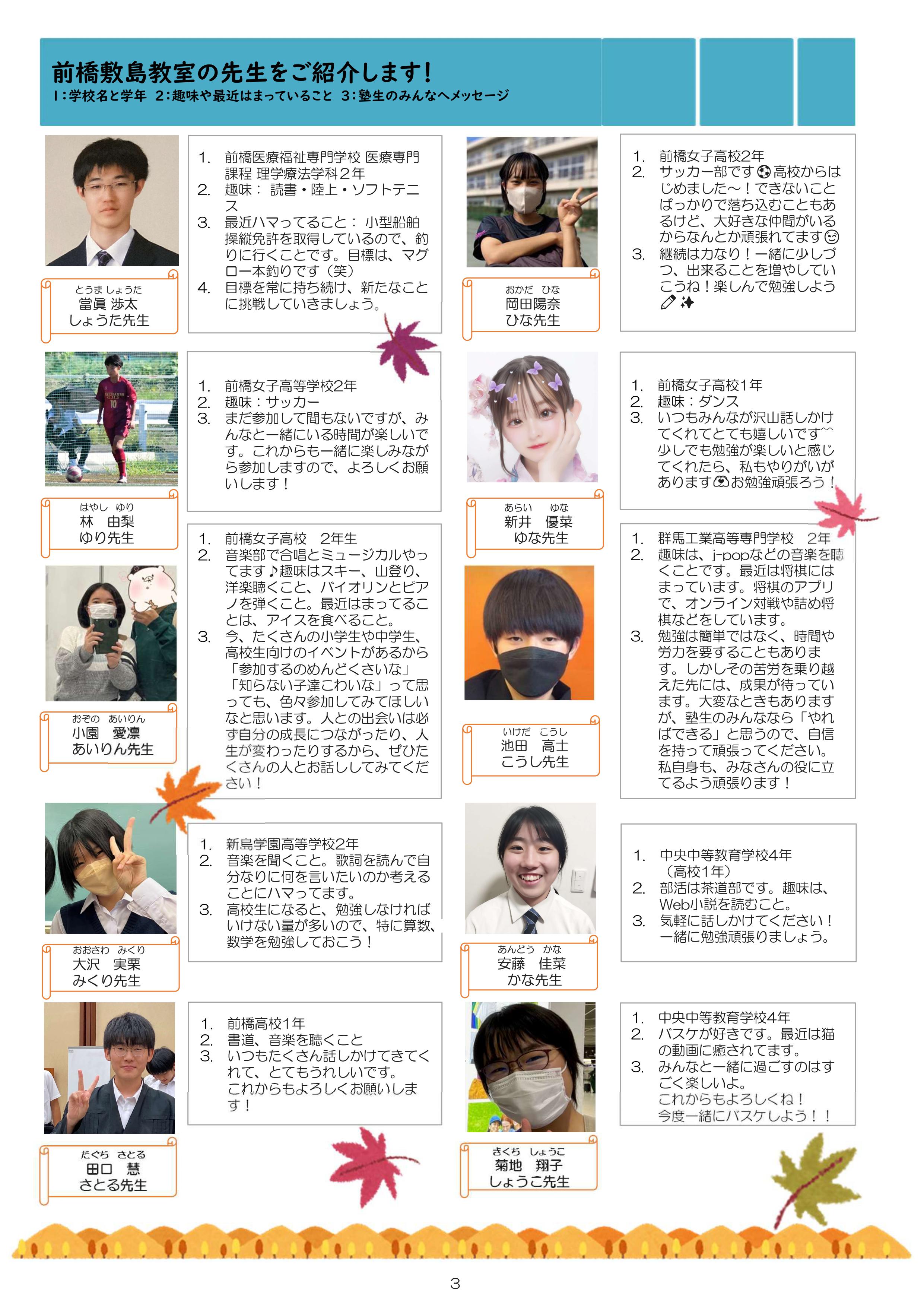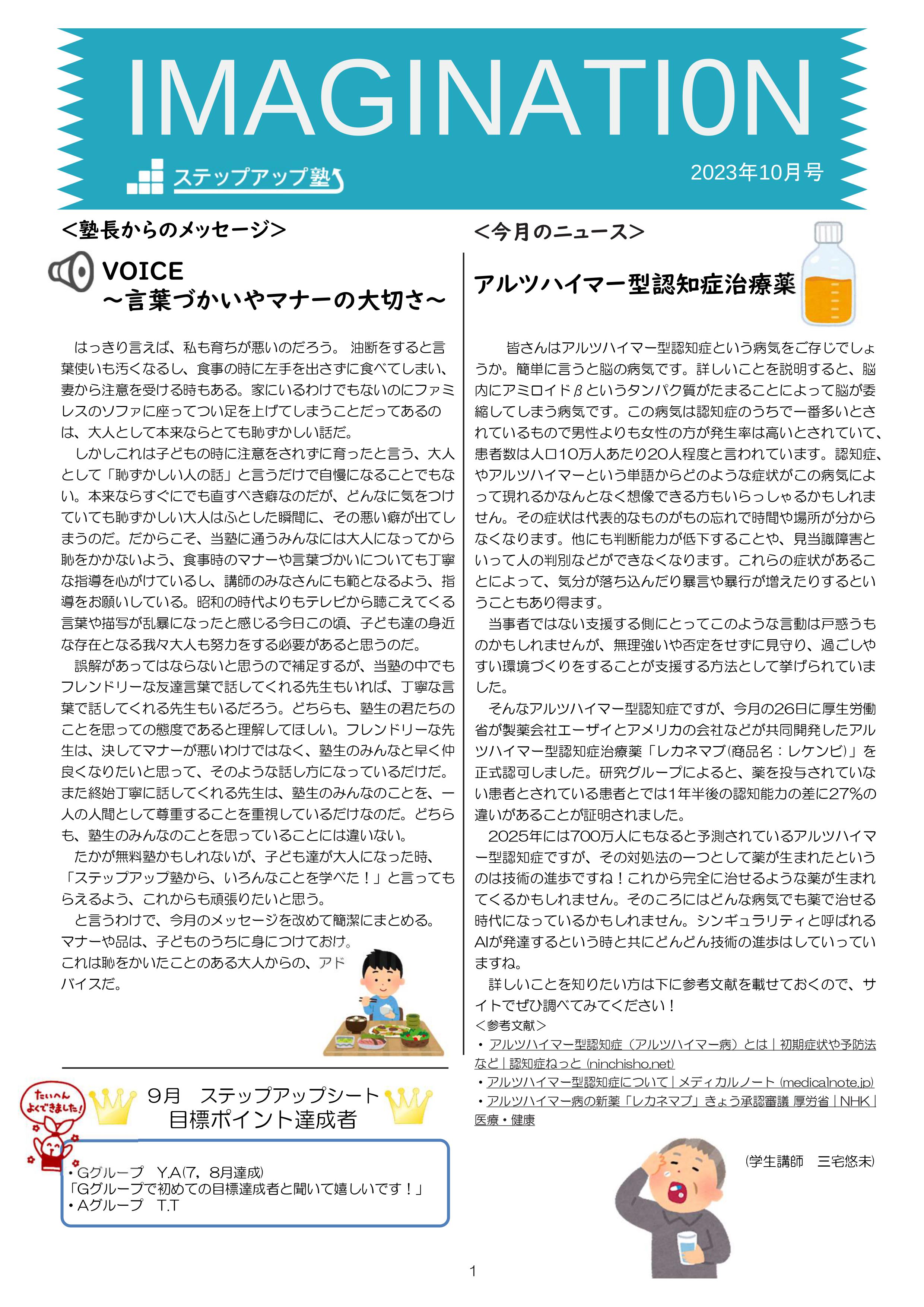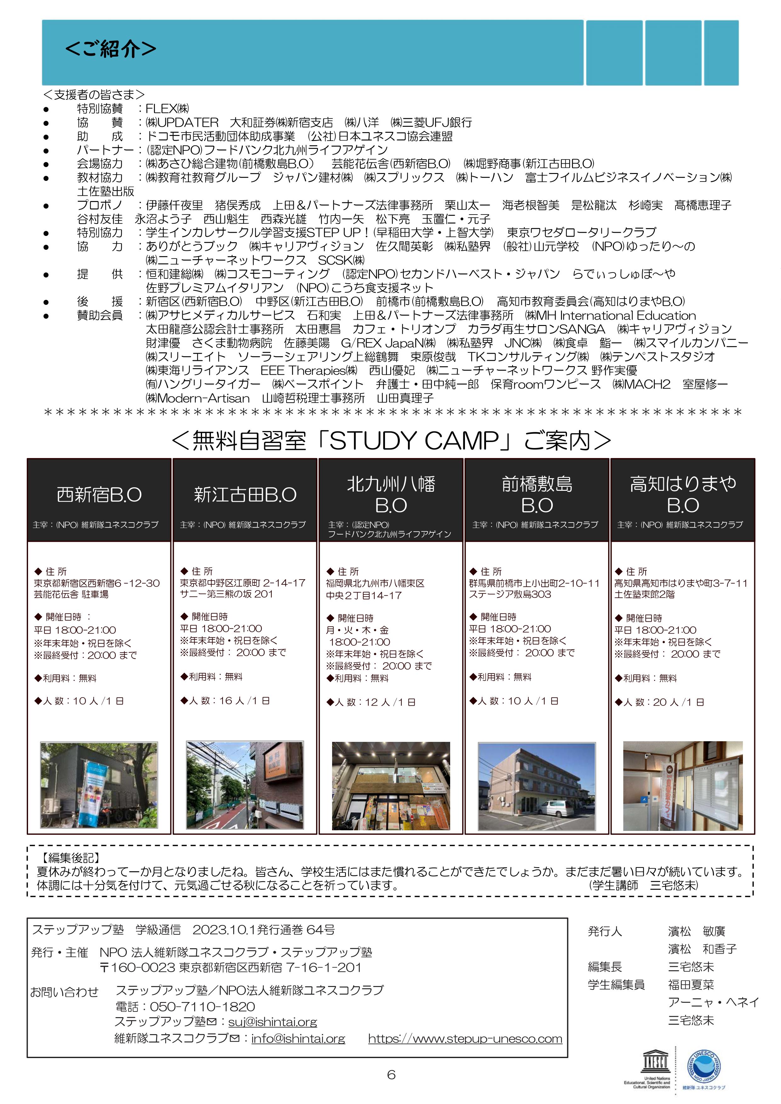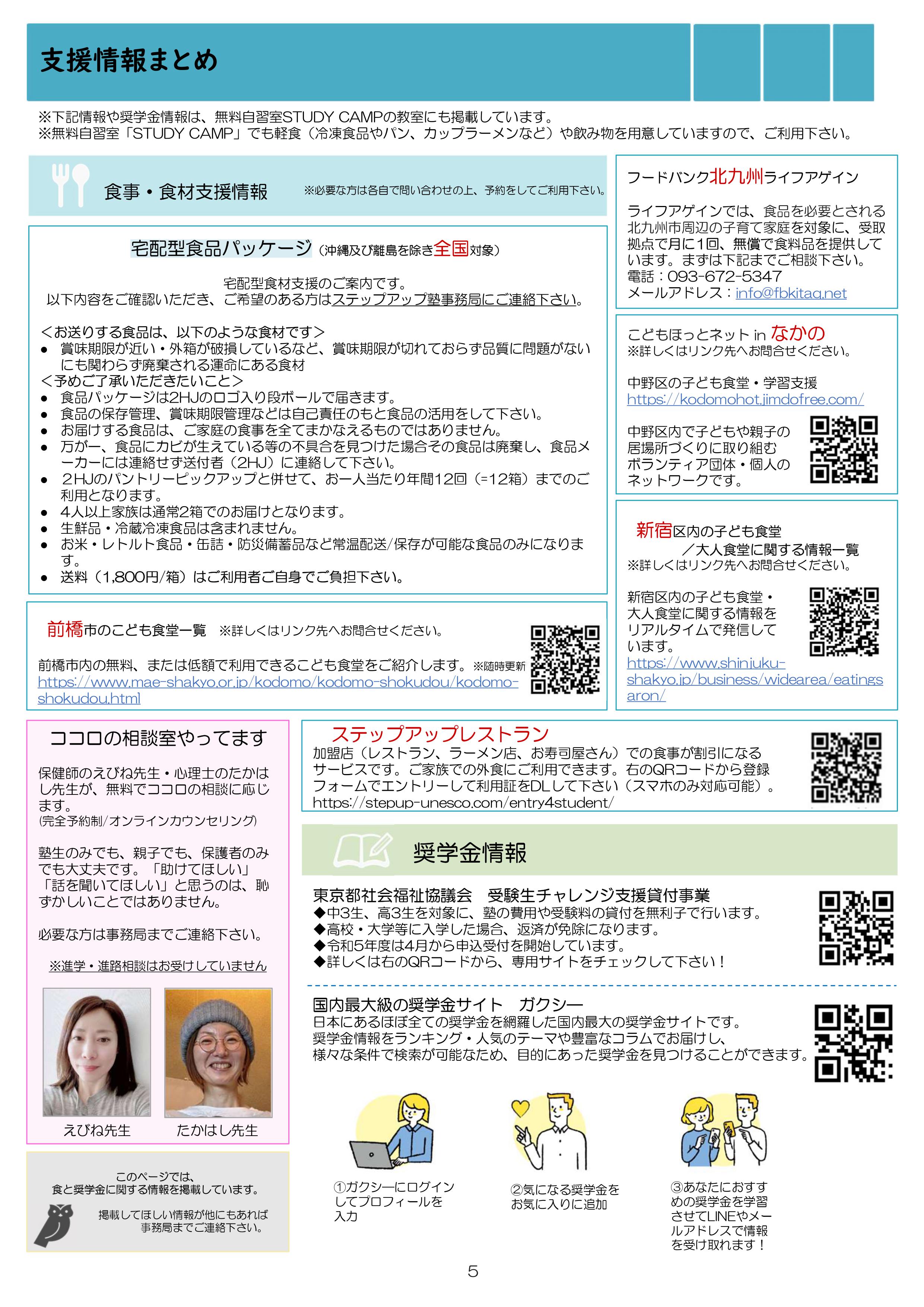 今月も食事つき個別指導型無料塾「ステップアップ塾」の学級新聞をお送りします。毎月学生ボランティア講師が作成しています。毎月塾生と講師が一緒に楽しく読む時間を設けていますので、皆さんも先生になった気持ちで読んで下さいね!