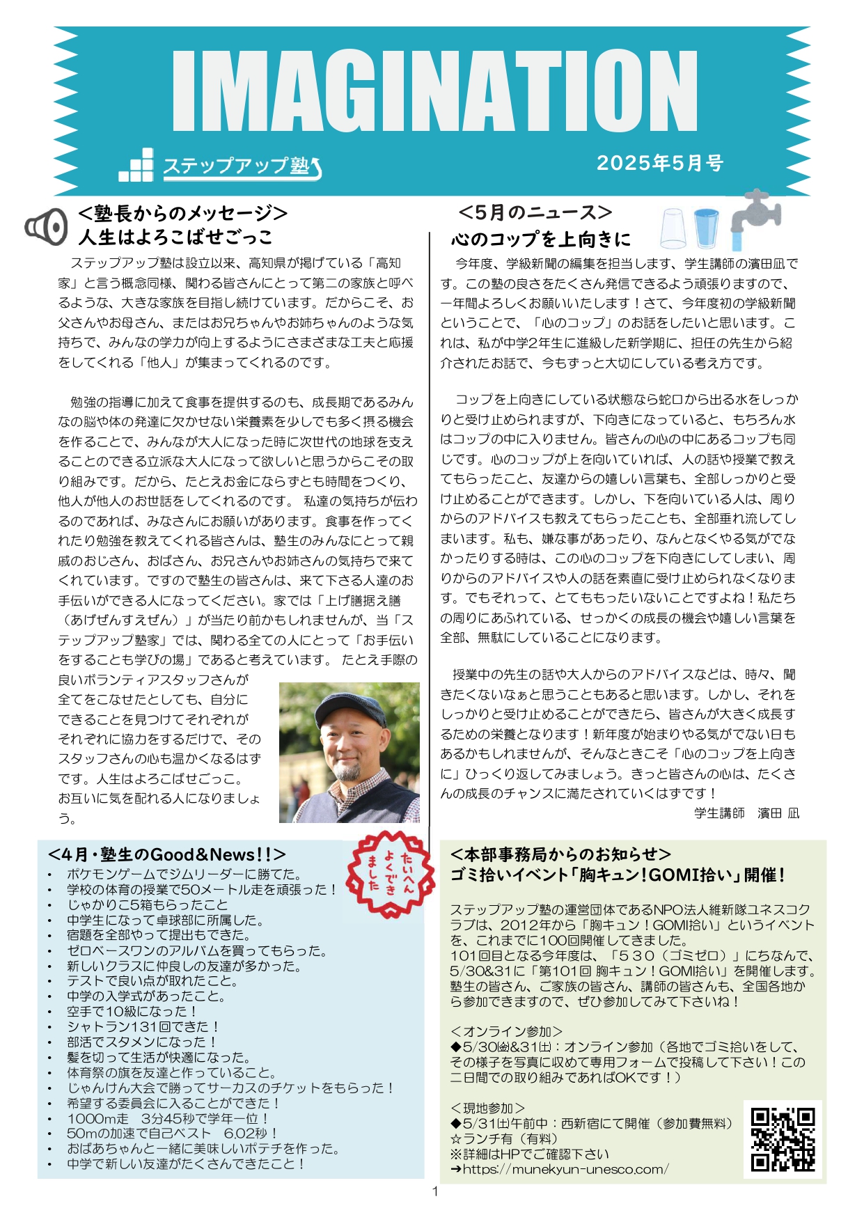 今月も食事つき個別指導型無料塾「ステップアップ塾」の学級新聞をお送りします。毎月学生ボランティア講師が作成しています。毎月塾生と講師が一緒に楽しく読む時間を設けていますので、皆さんも先生になった気持ちで読んで下さいね!