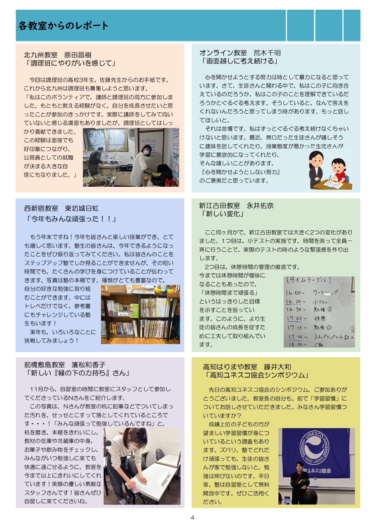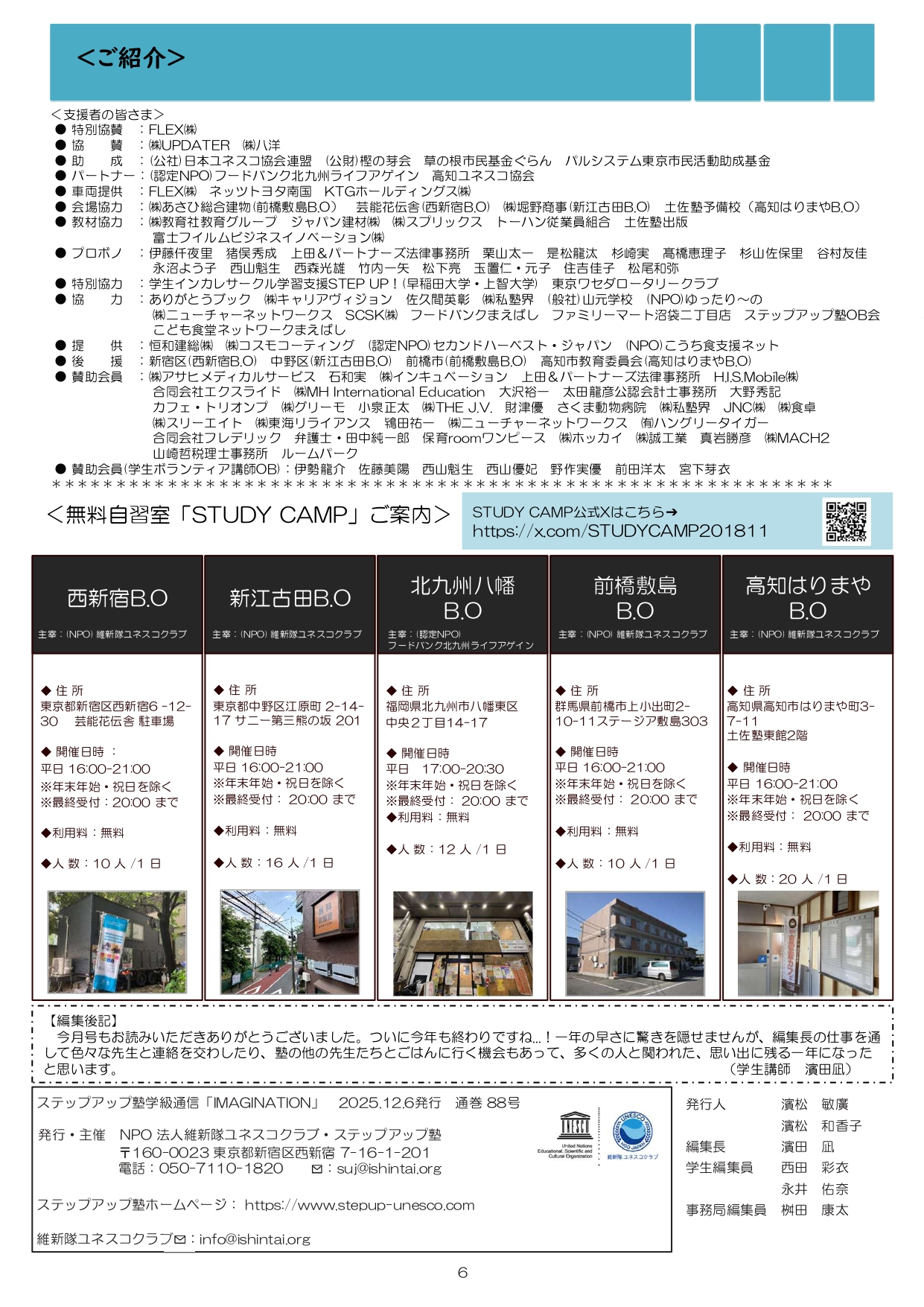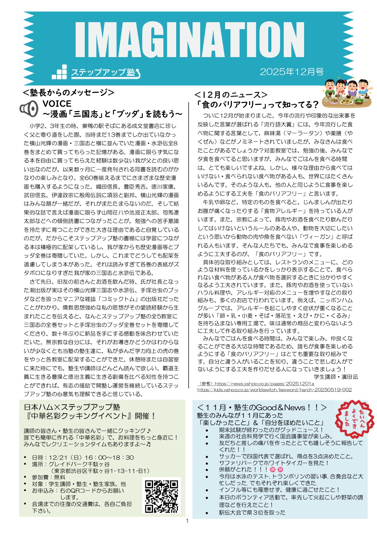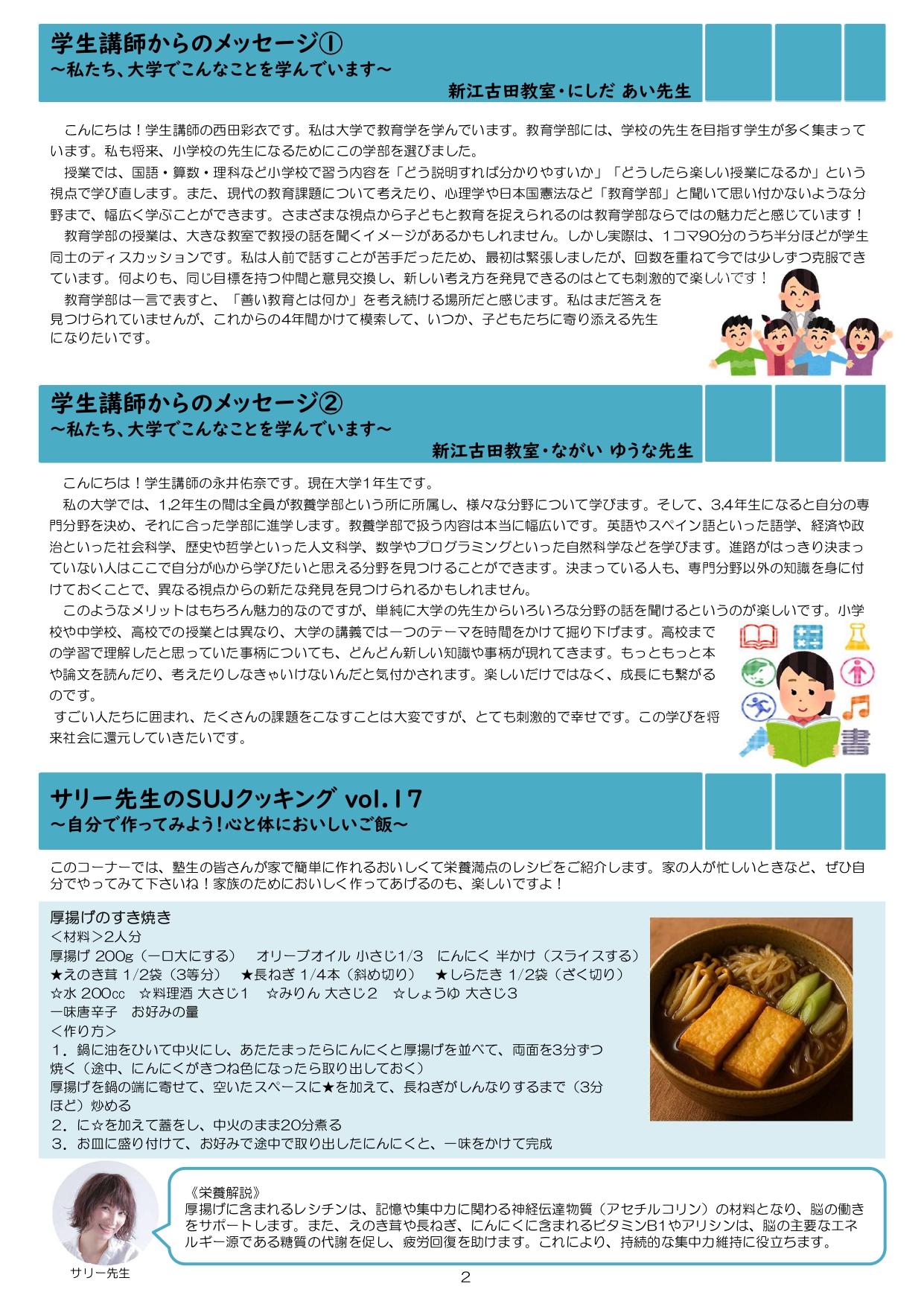 今月も食事つき個別指導型無料塾「ステップアップ塾」の学級新聞をお送りします。毎月学生ボランティア講師が作成しています。講師のみなさんの紹介コーナーもあるので講師のことを身近に感じながら楽しく読んでくださいね!