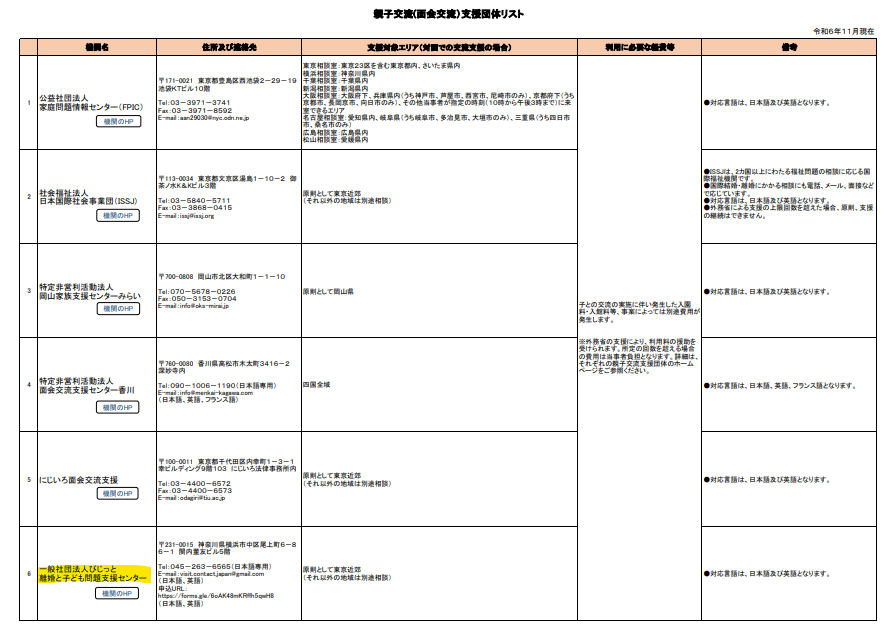 (2024年)ハーグ条約対応の支援機関として外務省から認定されました。