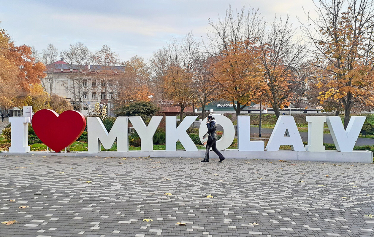 ミコライウ市内の街角=ウクライナ南部ミコライウで2025年11月