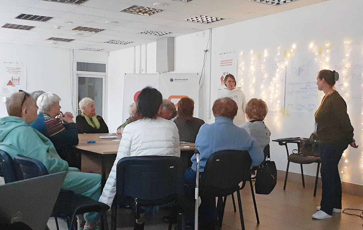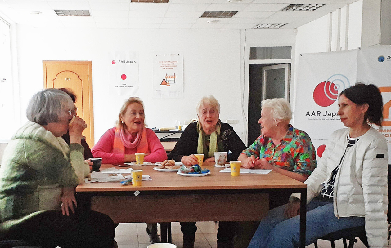 AARが現地協力団体と協力して運営しているミコライウ市内の「コミュニティハウス」では、利用者の方々が私を温かく出迎えてくれました。ここでは、戦地となった故郷から逃れ避難生活を送る女性や高齢者、障がいのある方々が気軽に集まって話し合ったり、心理カウンセリングを受けたりすることができます。