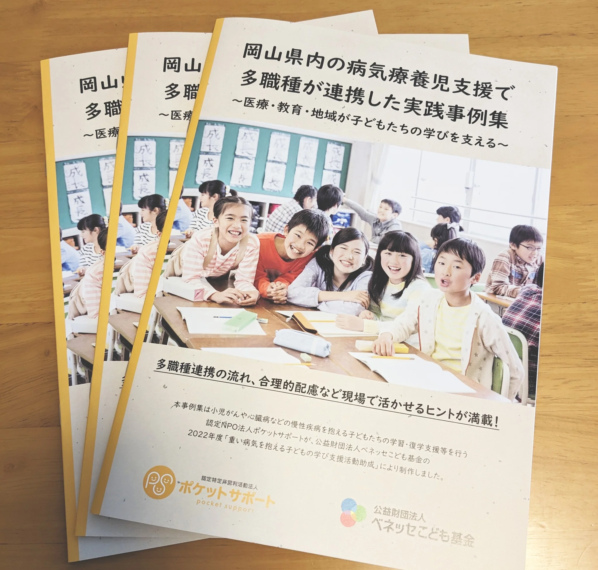 この度、ベネッセこども基金様の助成により、病気を抱える子どもたちの支援で、医療や教育・NPOなど多職種連携が連携した実践事例をまとめた冊子を制作しました。コロナ禍で変化した学校現場や、感染症対策がより一層厳しくなった医療現場と協力しながら、ポケットサポートも保健所や教育委員会など多機関・多職種連携で、ひとり一人の子どもたちの思いと願いに寄り添った事例を集めました。