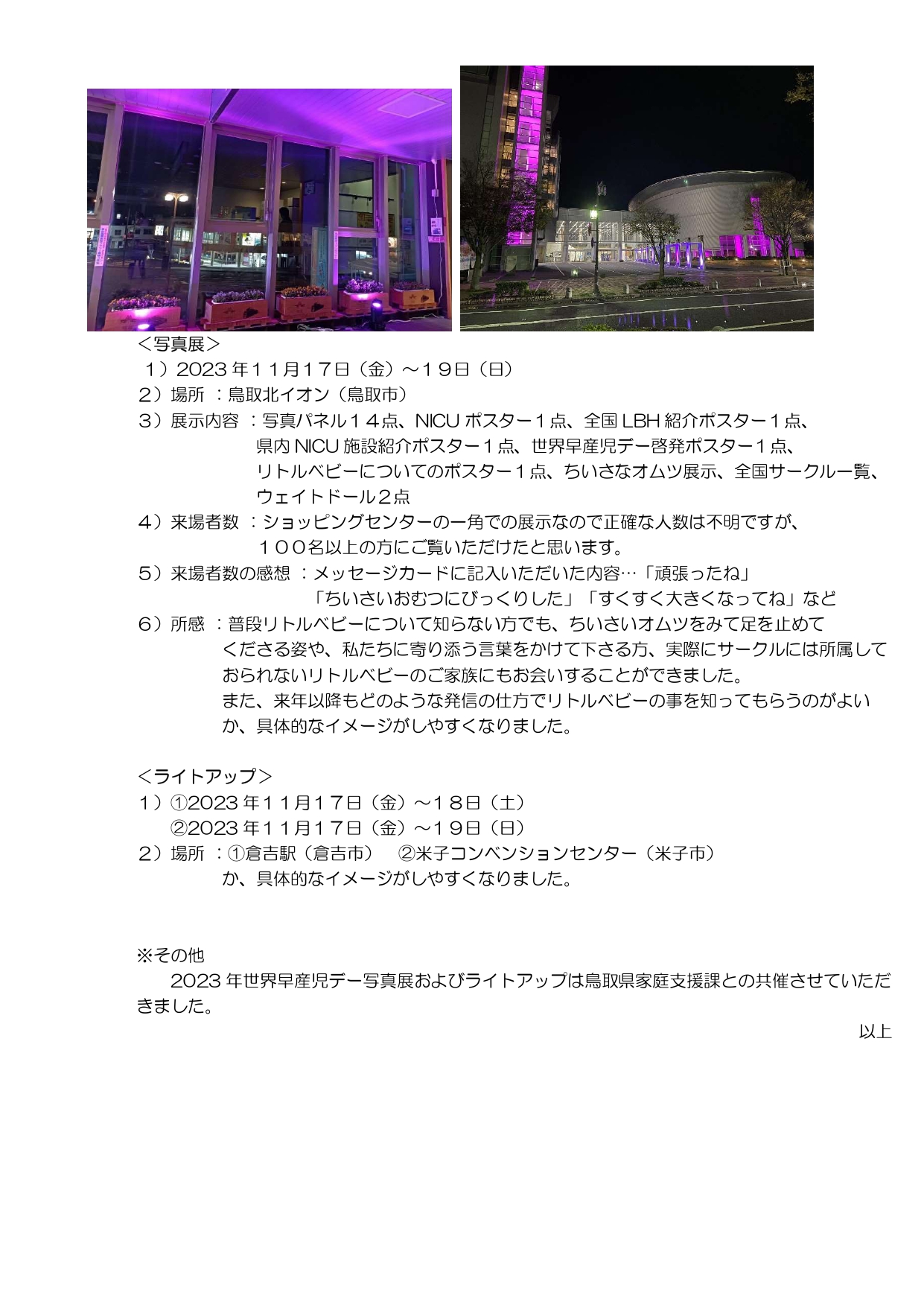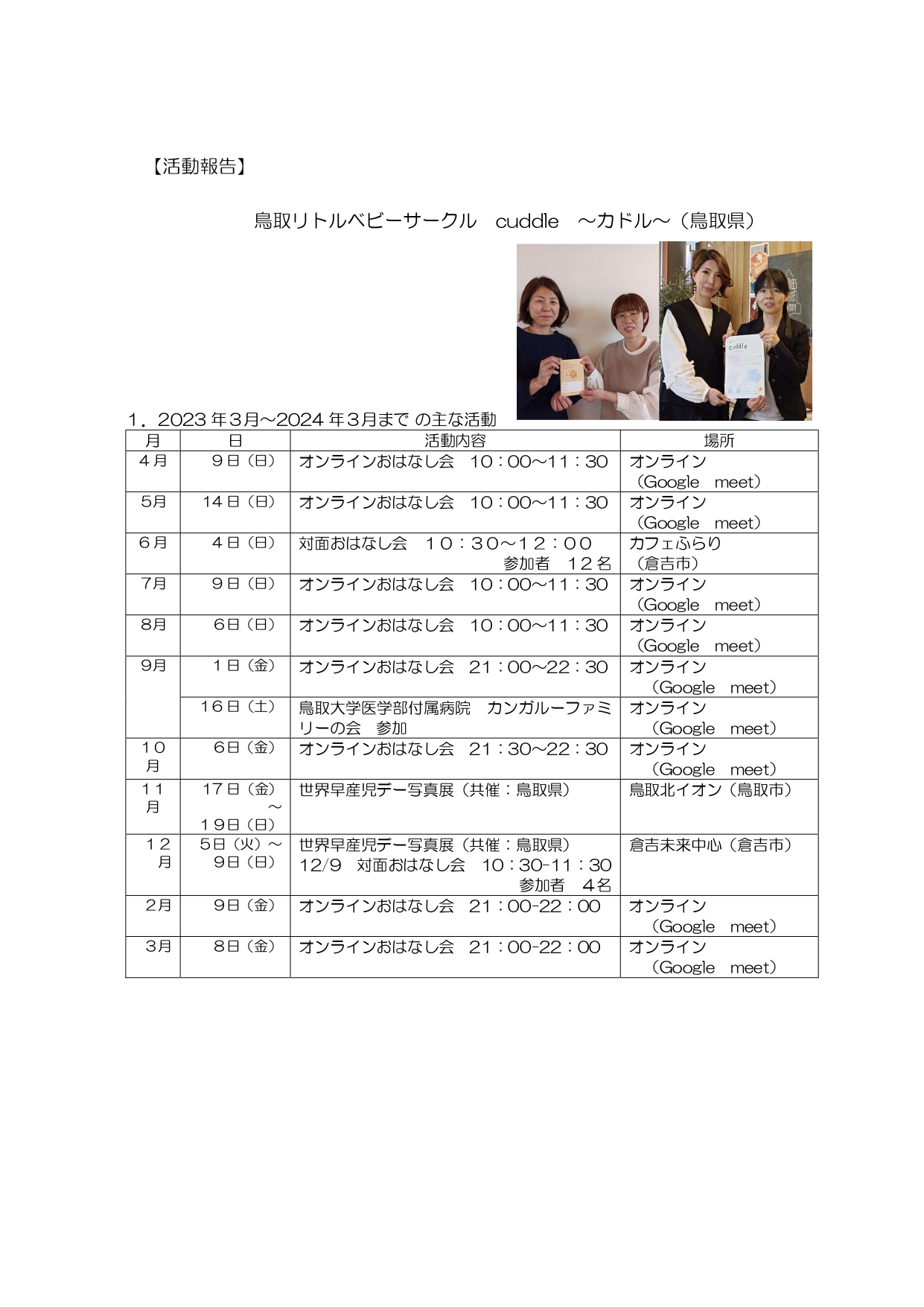 活動報告 鳥取県のリトルベビーサークルより