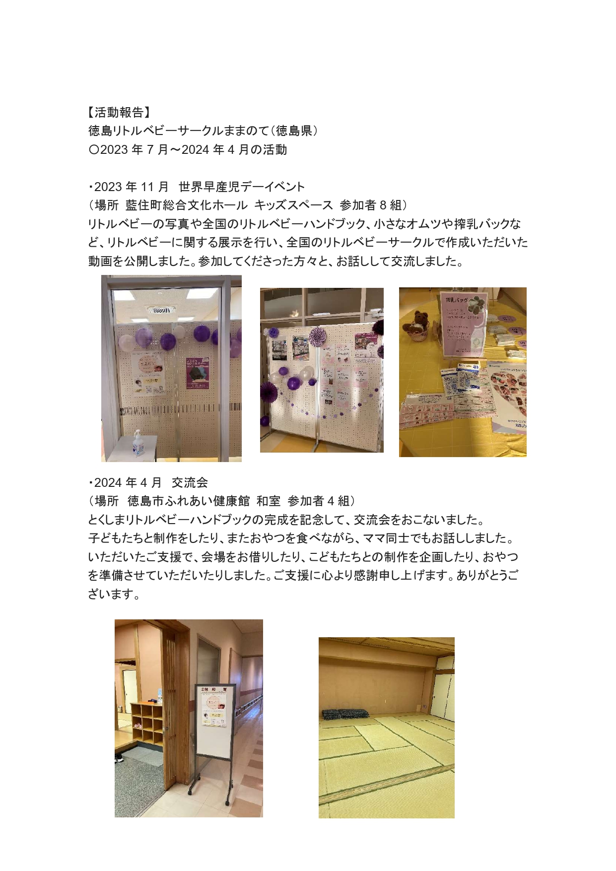 徳島リトルベビーサークルままのて(徳島県)より活動報告が届きました。