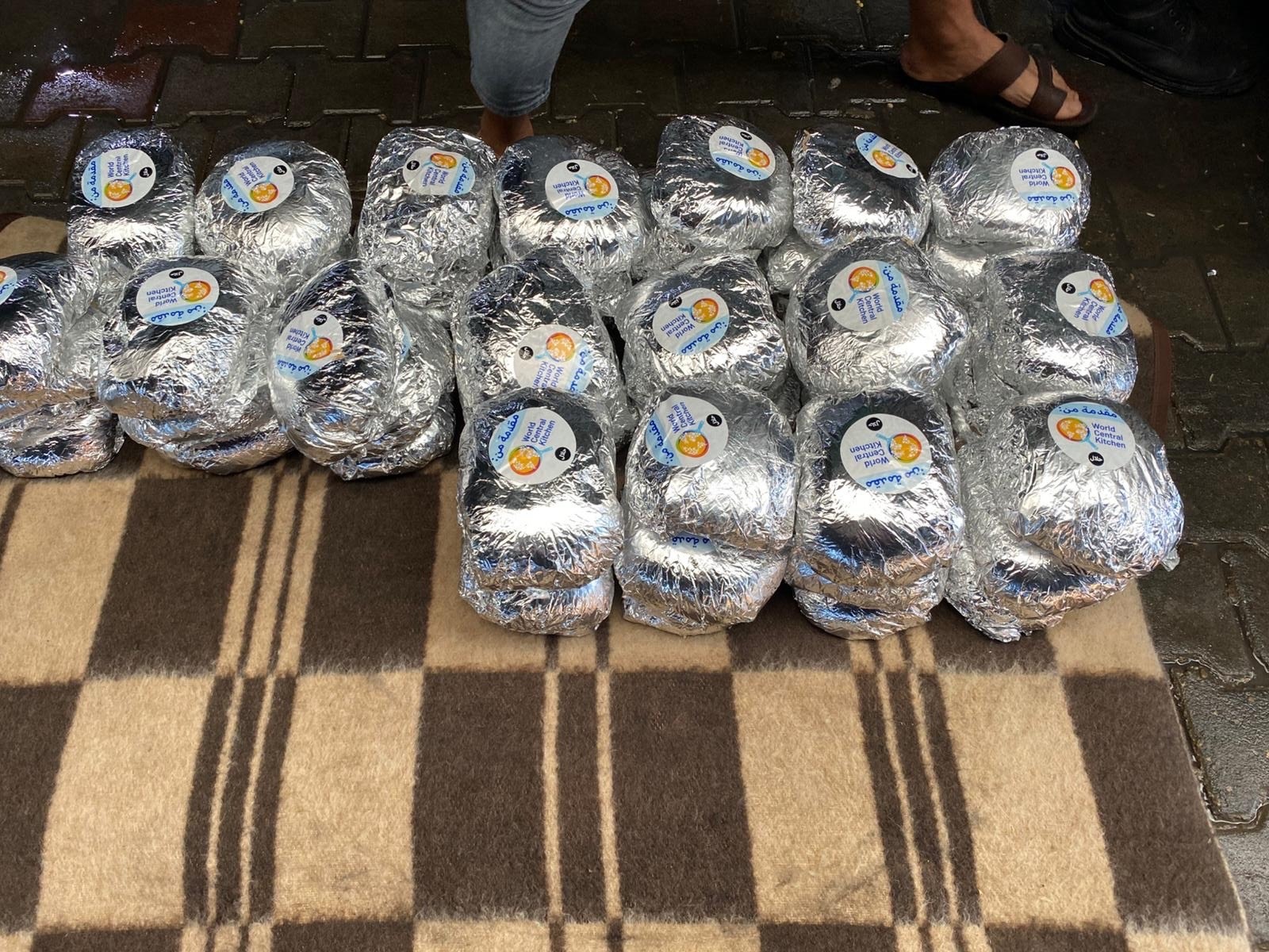 野菜たっぷりのキドラライスを、アルミホイルに包んで配り始めました。
