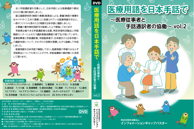 ・学習教材の開発:手話通訳者を対象とした医療通訳に関する学習教材DVDを制作し、医療の専門性向上を支援しています