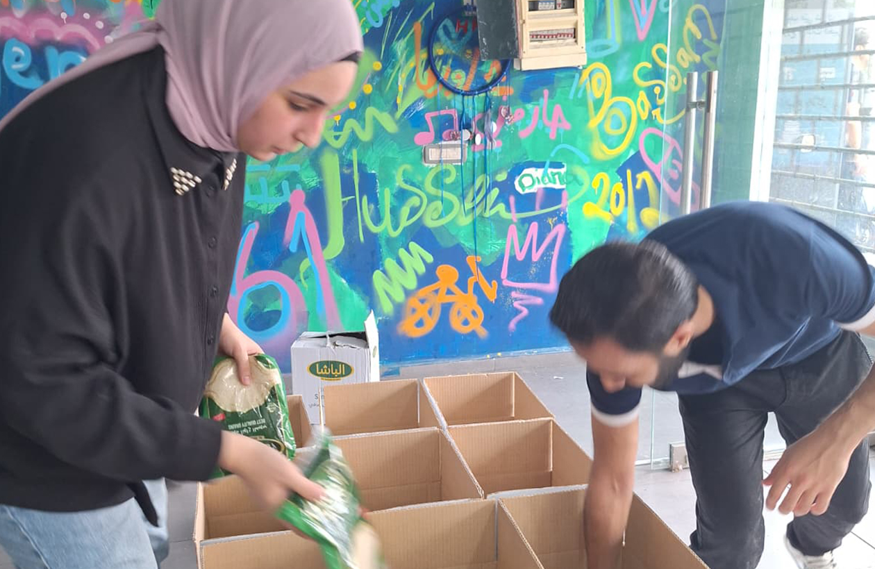 食料パッケージの梱包作業をする現地提携団体Food Blessedのスタッフ(レバノン首都ベイルート 2025年9月)