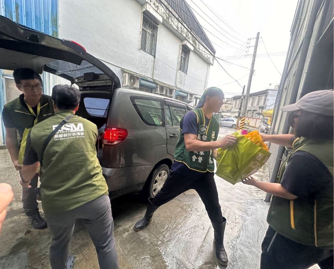 支援物資を車に乗せる現地協力団体=台湾東部花蓮県で2025年9月24日