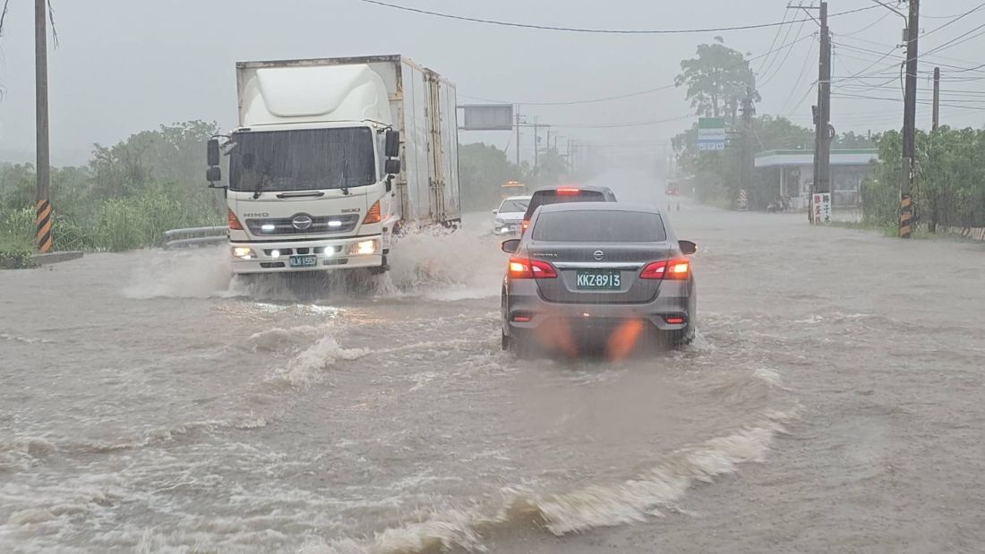 台風により水につかる車=台湾東部花蓮県で2025年9月24日