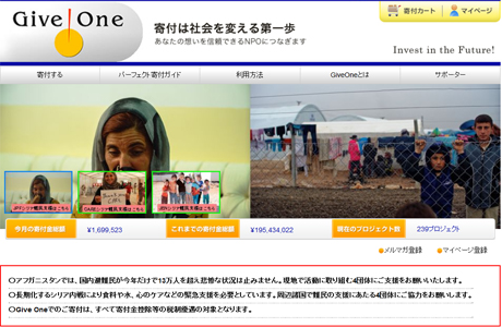 主要事業 | 1.オンライン寄付サイトGive One(ギブワン) 2.企業の社会貢献活動の支援 3.社会的活動を行うNPO 等に対する研修事業 4.調査研究、情報発信、政策提言に関する事業 |